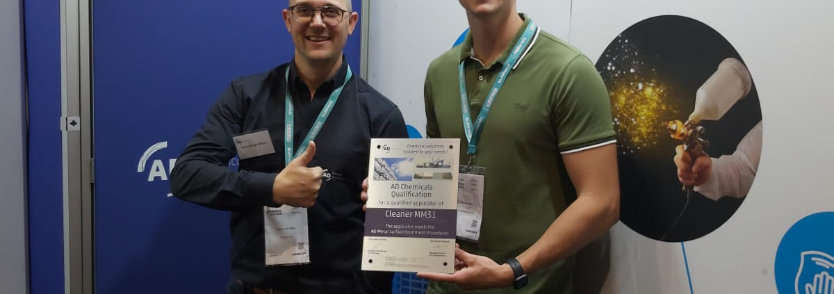 During Materials+Eurofinish+Surface 2021 in the Brabant Hallen, Koen Munsters from Spuiterij Munsters in Deurne received the AD Chemicals Qualification – MM31.