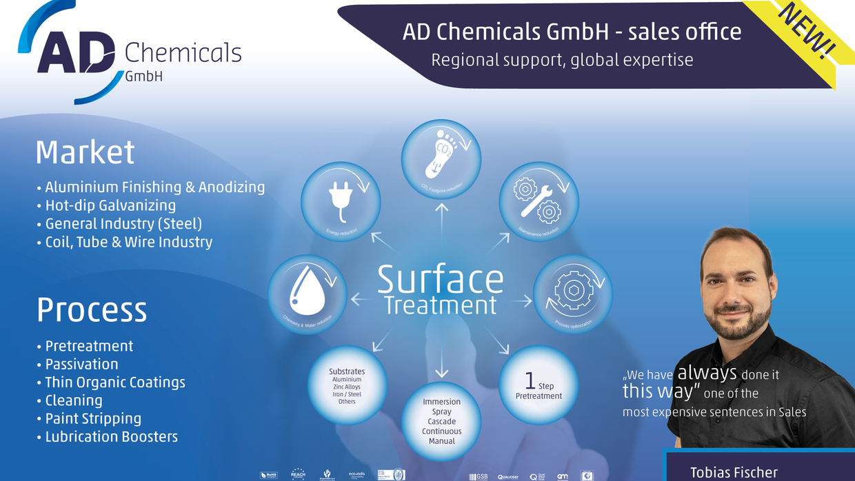 With a local presence, we are improving response times, market access, and, above all, technical support for chemical metal surface treatment in Germany.